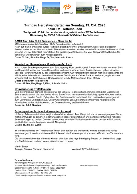 In den Herbstferien bleibt die Turnhalle des TGV wegen Renovierungsarbeiten vom 27.10.2025 bis 31.10.2025 für Sportbetrieb und andere Aktivitäten geschlossen.